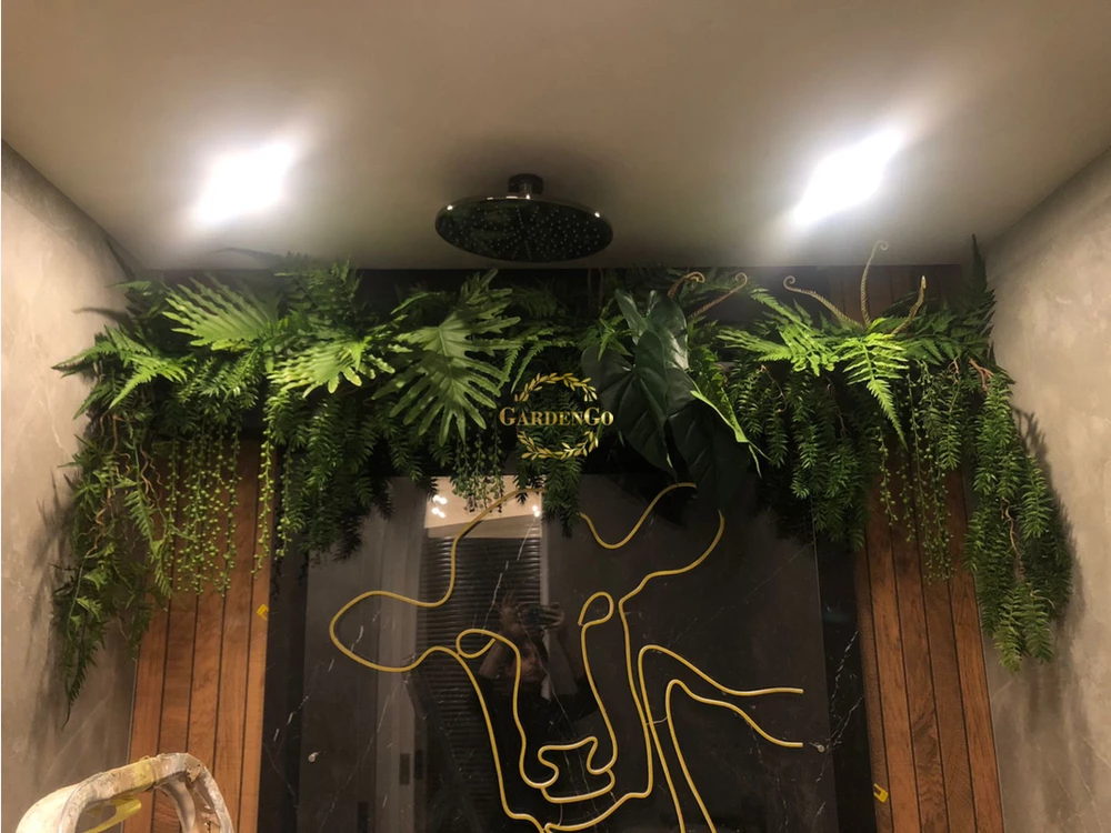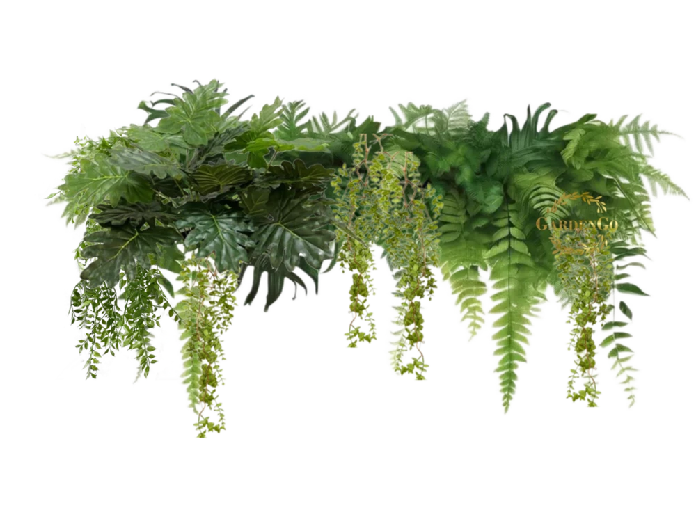 Композиция с искусственными растениями на рейке в лесном стиле, Д100, В45 см