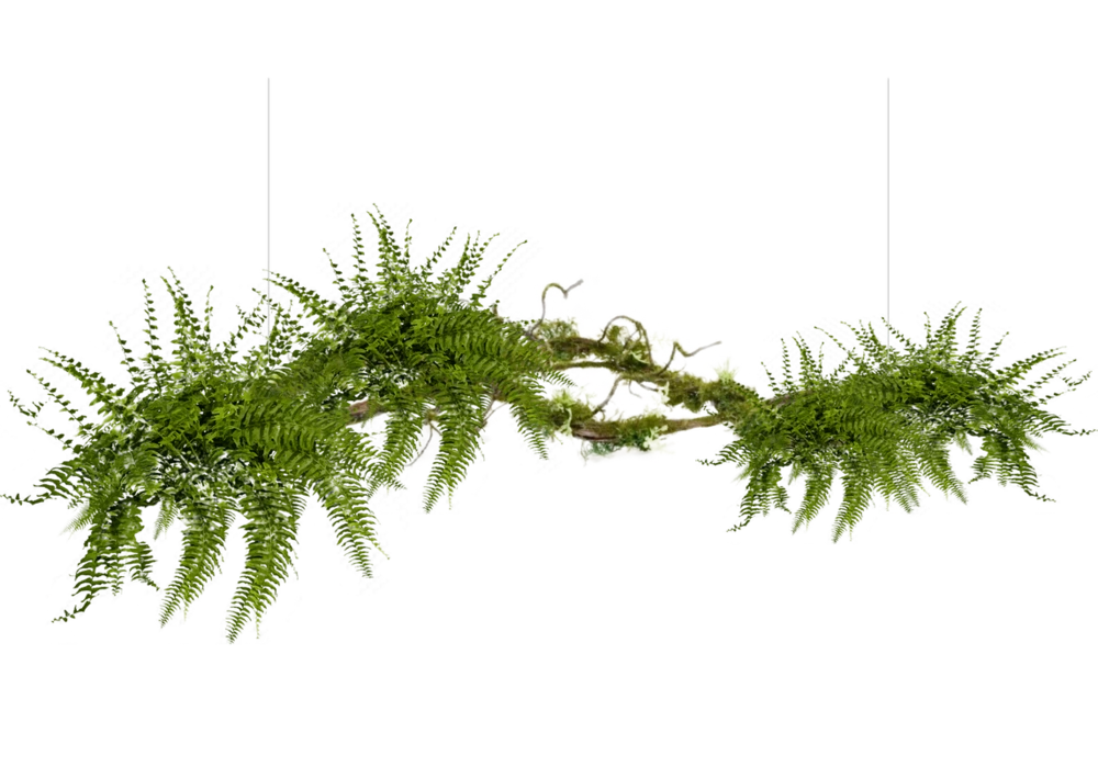 Микс искусственных коротких кустов и ампельной зелени -Основа: рейка\ стволы, ветки -Металлические цепочки\джут\угловые крепления *Подсветка: лампы, диоды по запросу Размеры: Рейка, стволы: Д 100 см Ш 30 см высота растений 20-6