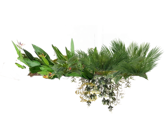 Кашпо с миксом искусственных растений в тропическом стиле №213, В170*Д200*Ш30