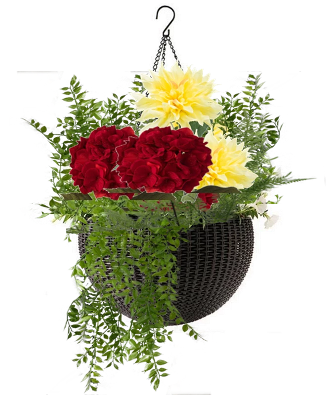 Кашпо подвесное с искусственными розами Д25, В40 см