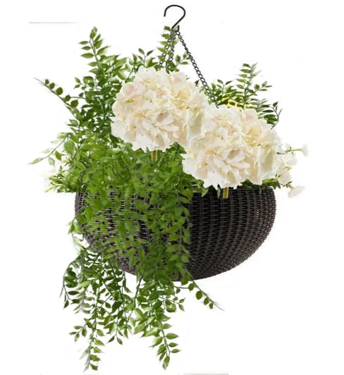 Кашпо подвесное с искусственной гортензией Д35, В45 см