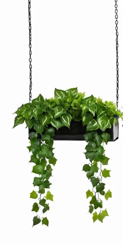 Микс искусственных коротких кустов и ампельной зелени -Основа: рейка\ стволы, ветки -Металлические цепочки\джут\угловые крепления *Подсветка: лампы, диоды по запросу Размеры: Рейка, стволы: Д 100 см Ш 30 см высота растений 20-6