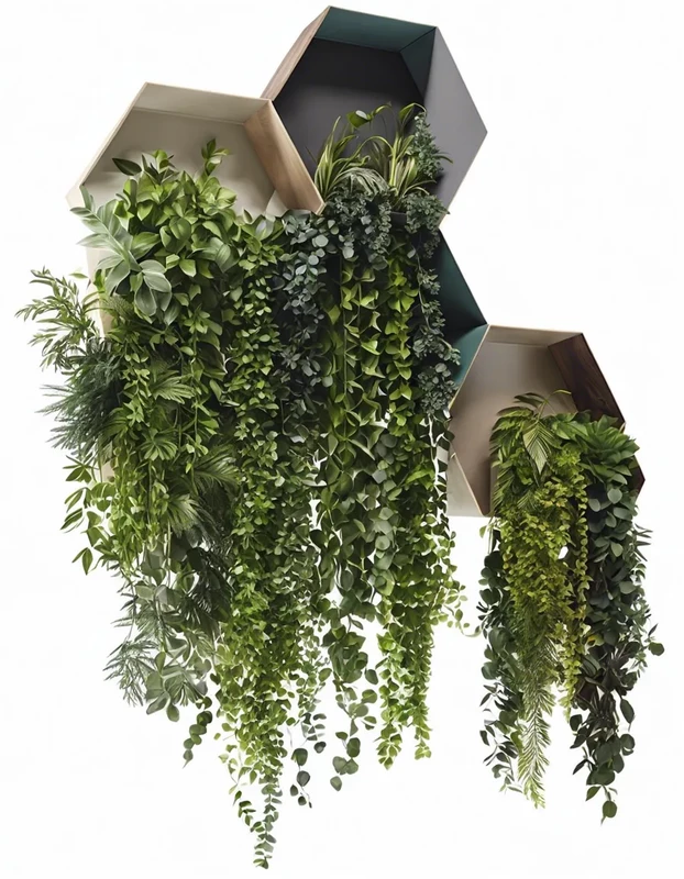 Полки настенные "Соты кашпо" с искусственными растениями набор из 5 шт., Д70, В75 см