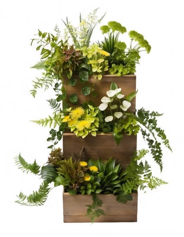 Кашпо настенное вертикальное с композицией искусственных растений №263, Д35, В120 см