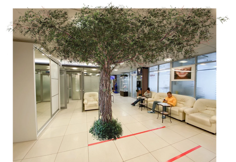 6. Универсальность: Искусственные растения могут быть использованы в самых разных пространствах — от жилых комнат и офисов до ресторанов и гостиниц. Их можно размещать в горшках, на стенах, потолке или в качестве элементов декора и зонирования.