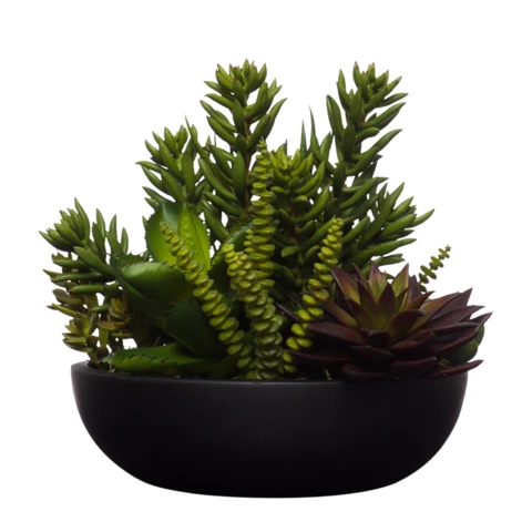 Декор настольный "Микс суккулентов Эхеверия" Искусственные суккуленты в керамической чёрной вазе Растение: по рендеру или аналог Количество: 13 веток Кашпо: керамическое Д15см или по наличию аналог Размеры общие: В 20, Д 15