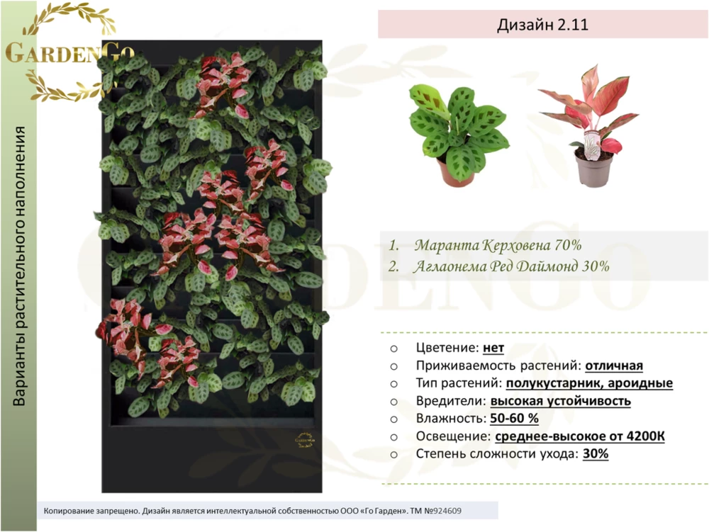 Дизайн № 1.2 Маранта Триколор 100% Если вы не нашли подходящий размер или дизайн,- обратитесь к менеджеру для подбора и составления индивидуального проекта Назначение: монолитная фитоконструкция с автополивом для содержания живых растений. ...