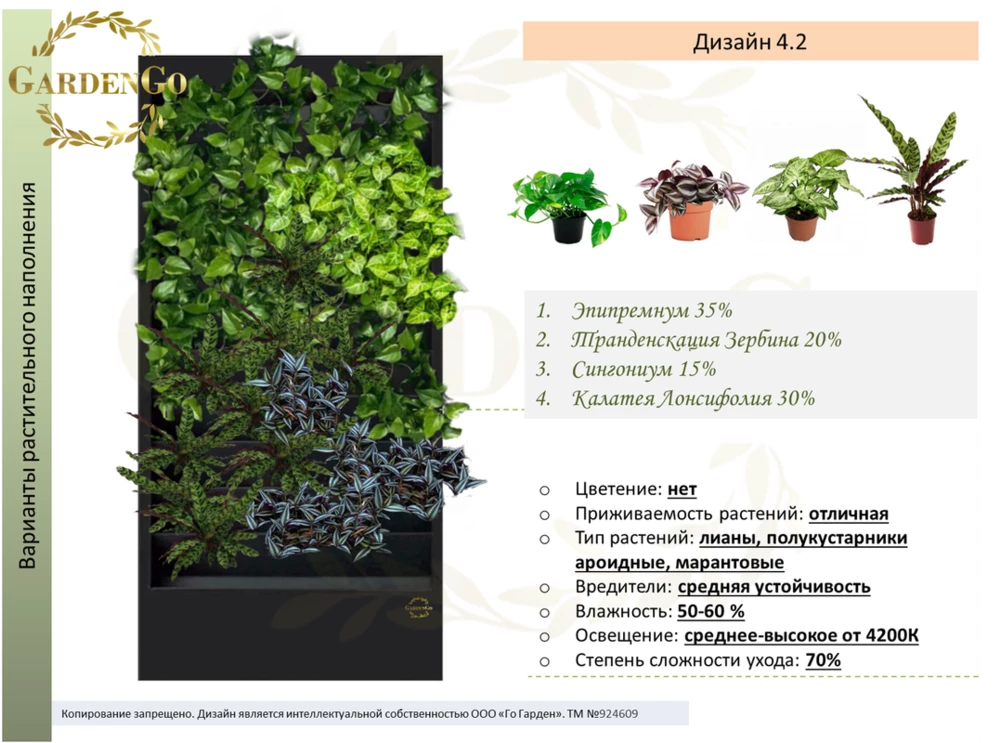 • Фитостена от GardenGo — это не просто украшение, а современное решение для тех, кто ценит комфорт, красоту и заботу о природе. Подарите себе и своим близким кусочек живой природы прямо в стенах вашего дома!