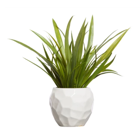 Декор с искусственным растением "Осока мини" в кашпо Растение: По рендеру или аналог Количество: 1 куст мини Кашпо: Белое Д 8, или по наличию аналог Размеры общие: В 21