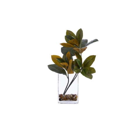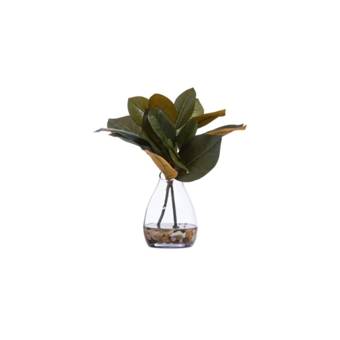Декор настольный "Листы Магнолии" Искусственные растения в стеклянной вазе Д9 с имитацией воды (эпоксиднаяола) с натуральными камнями Цветы: Оттенки цветов на выбор Ваза: по запросу или по наличию аналог Размеры общие: В 30, Д 20