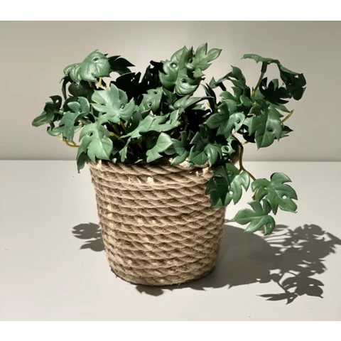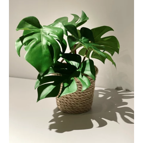 Искусственное растение "Монстера" в джутовом кашпо Растение: По рендеру или аналог Количество:5 листов\1 куст Кашпо: Натуральный джут, пластик Д12 или по запросу Размеры общие: В 26 Ш 33