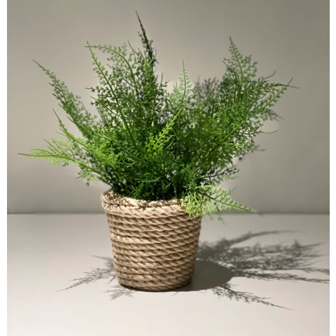 Искусственное растение "Папоротник" в джутовом кашпо Растение: По рендеру или аналог Количество:1 куст Кашпо: Натуральный джут, пластик Д12 или по запросу Размеры общие: В 33 Ш 36