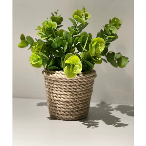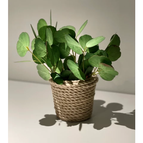 Искусственное растение "Эвкалипт Бэби" в джутовом кашпо Растение: По рендеру или аналог Количество: 1 ветка Кашпо: Натуральный джут, пластик Д12 или по запросу Размеры общие: В 25 Ш 20