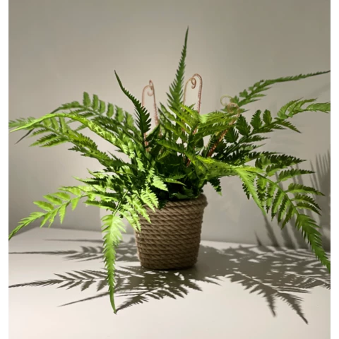 Папоротник в джутовом кашпо подвесной
