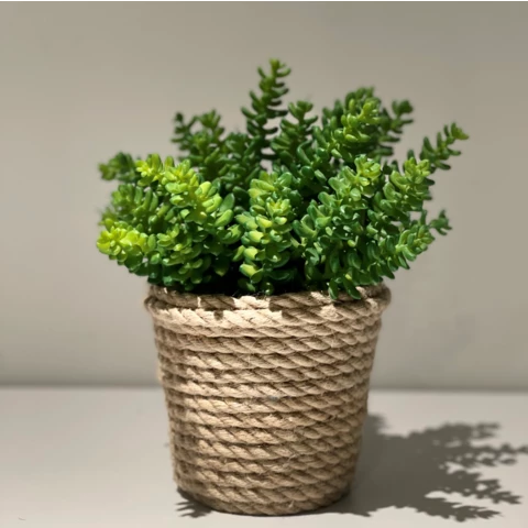 Искусственное растение "Суккулент" в джутовом кашпо Растение: По рендеру или аналог Количество: 3 куста Кашпо: Натуральный джут, пластик Д12 или по запросу Размеры общие: В 22 Ш 17