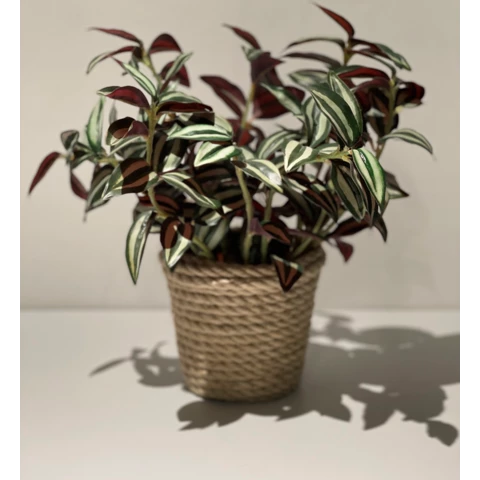 Искусственное растение "Традесканция" в джутовом кашпо Растение: По рендеру или аналог Количество: 2 куста Кашпо: Натуральный джут, пластик Д12 или по запросу Размеры общие: В 27 Ш 25