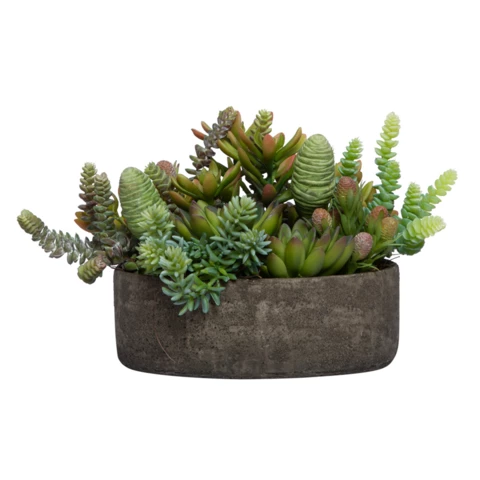 Декор настольный "Микс суккулентов Крассула" Искусственные суккуленты в керамической вазе Растение: по рендеру или аналог Количество: 11 веток Кашпо: керамическое Д18 или по наличию аналог Размеры общие: В 17, Д 18