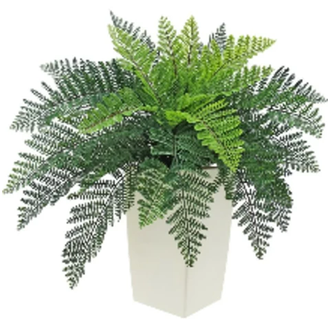 Декор с искусственными растениями в пластиковом кашпо "Папоротник крупнолистный" XL Растение: По рендеру или аналог Количество:3 куста по 70 Кашпо: пластик В60Д30, или по наличию аналог Цвет кашпо: Белый(на выбор) Размеры общие 35 В 90