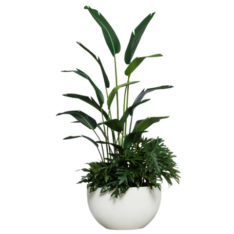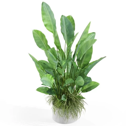 Искусственное растение в кашпо "Стрелиция" Растение: По рендеру или аналог Количество: 2 куста (1шт 160, 1 шт. 120.) Кашпо: Белое Д30, или по наличию аналог Размеры общие: В 170