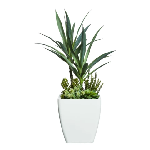 Декор с искусственным растением "Агава и папоротник" в кашпо на подставке Растение: По рендеру или аналог Количество: 1 куст агавы, 3 папоротника Кашпо: Белое Д25\В50, или по наличию аналог Размеры общие 30 В 70